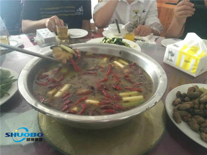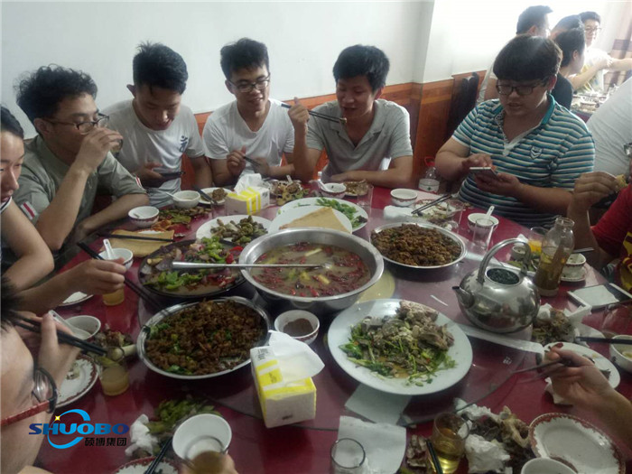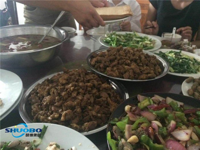 我們碩博集團為感謝全體同仁一直來為公司所做的貢獻與努力,并秉著“增強企業(yè)文化精神、增強企業(yè)凝聚力”特定于2017年7月1日年中會議之后全體員工乘車至徐州沛縣張莊鎮(zhèn)北灣集的農(nóng)家樂全羊館聚餐。