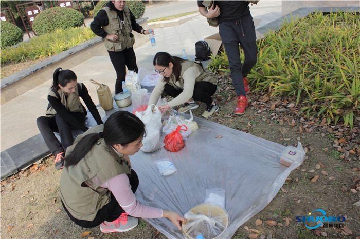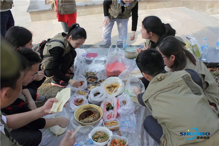不知不覺就到了午飯時間,沿襲歷史,每隊12人240元經(jīng)費,隊長安排自理,由于時間充分,加上上一次的經(jīng)驗,大家準備的還是很充裕的,沒有上一次拓展時某隊只有煎餅和醬這種局面。