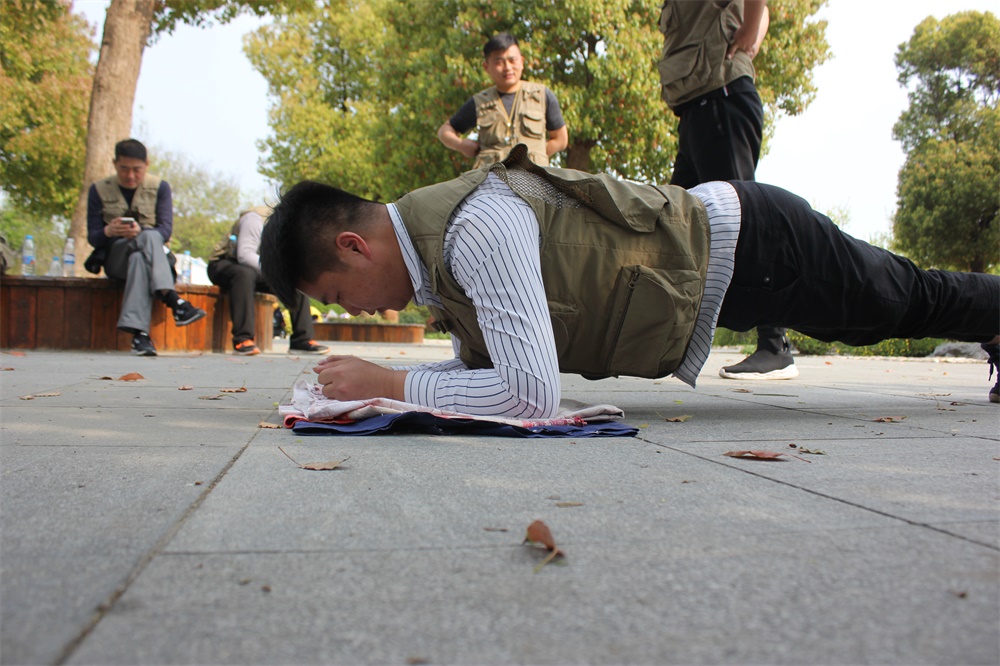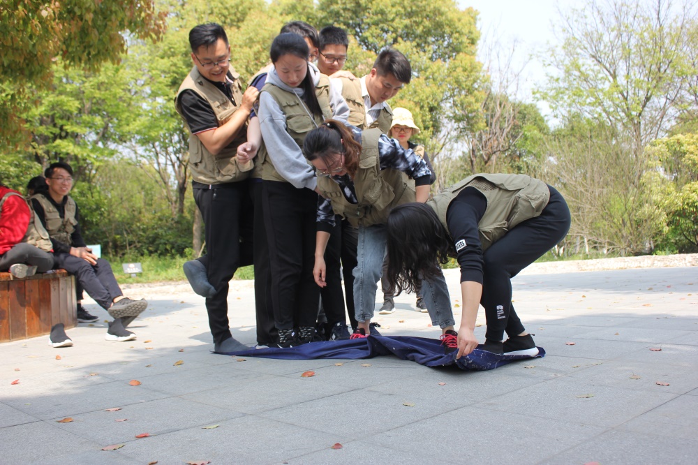 首先是翻葉子,這算是一個(gè)比較經(jīng)典的游戲了,每組隊(duì)員站在一塊布上,然后在所有人不得以身體任意部位碰到布以外的地方,把布翻過來。看哪組時(shí)間最短。旨在提高大家的協(xié)作能力和團(tuán)隊(duì)精神。最終紅隊(duì)更勝一籌,穩(wěn)中求快就會(huì)勝利。