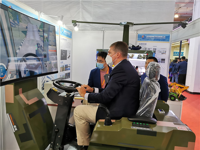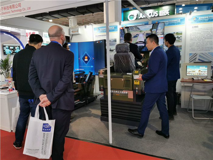 此次展會,我司的參展設(shè)備,是我司根據(jù)中國人民解放軍陸軍工程大學要求研制的工程機械裝備仿真模擬器,輪式裝載機仿真模擬器、高速輪式挖掘機仿真模擬器及飛機充氧車仿真模擬器,此次展出的設(shè)備,主要采用模組機的概念來設(shè)計,通過簡單的硬件模塊更換,自動識別軟件系統(tǒng),從而切換不同設(shè)備的模擬器,其中高挖模組機配備六自由度平臺,讓模擬器操作更加真實,更符合真機體感。