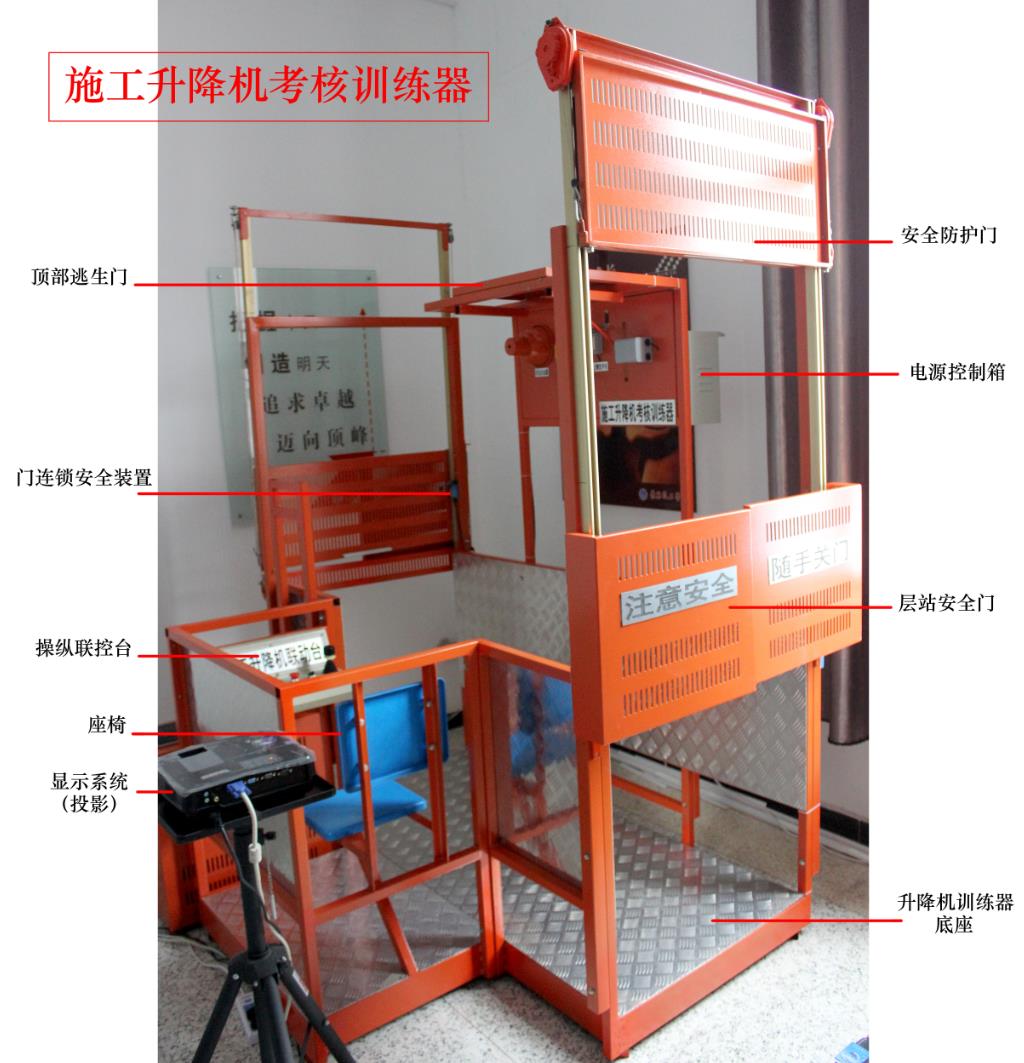 施工升降機模擬教學(xué)設(shè)備由軟硬件構(gòu)成。 軟件部分有:引導(dǎo)訓(xùn)練、自由訓(xùn)練、操作考核、視頻播放、文檔資料、理論考核等內(nèi)容;硬件采用與真機完全相同結(jié)構(gòu)進行設(shè)計生產(chǎn),包括:安全防護門、原裝聯(lián)動臺、上下限位器、安全防墜器、顯示系統(tǒng)等配件,其操作步驟和真機操作完全一致。